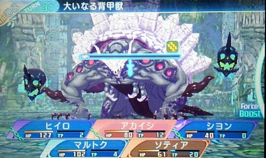 その前に攻撃役のTPが切れてたけどね。 半分くらいは削れたけど |
